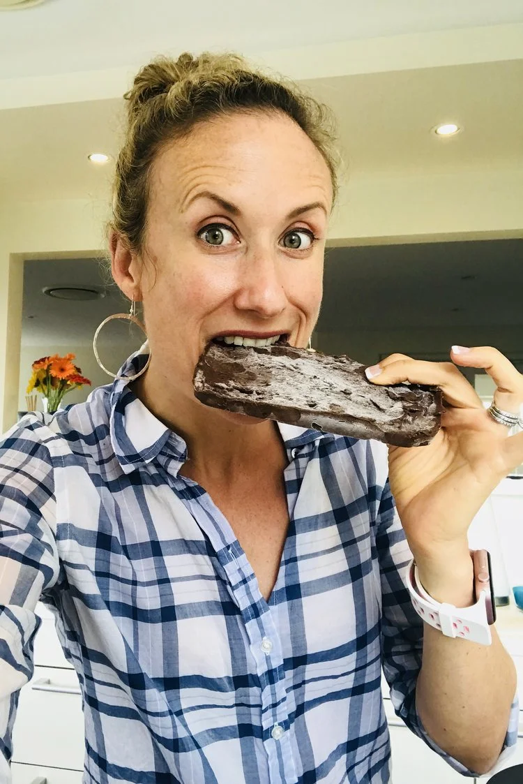 Frozen Shakeology Chocolate Peanut Butter Bar - a great treat for refeed day. Check out my blog post with video recipe.